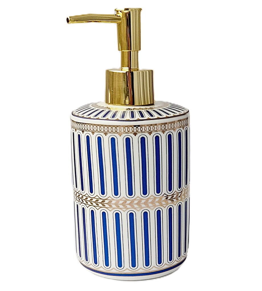 Šis keraminis muilo dozatorius, dekoruotas subtiliais mėlynos, baltos ir auksinės spalvos raštais, suteiks jūsų vonios kambariui ar virtuvei daugiau elegancijos. Tai ne tik praktiškas kasdienis aksesuaras, bet ir stilinga interjero detalė, kuri akimirksniu pakylėja erdvės estetiką.
