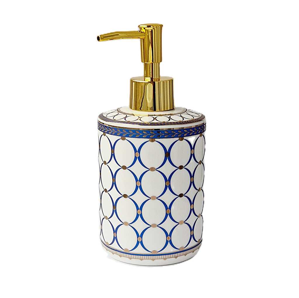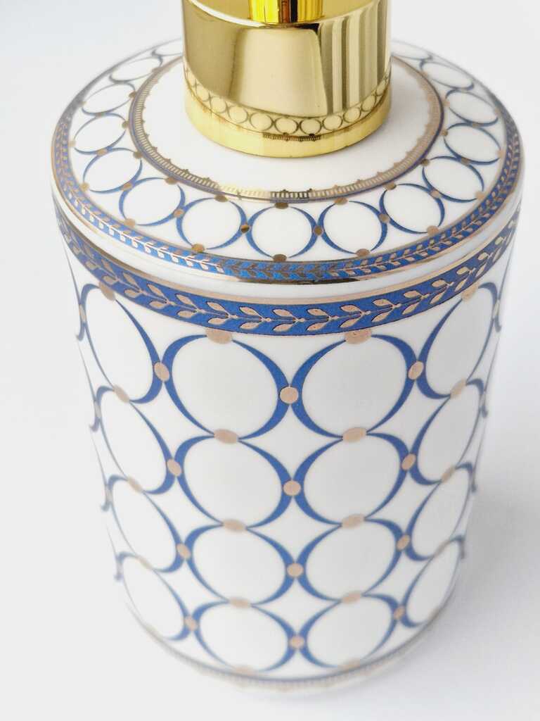 Keraminis muilo dozatorius „Oval” – prabangus vonios kambario aksesuaras. Išskirtinio dizaino indelis dekoruotas mėlynais ir auksiniais raštais, kurie sukuria prabangos ir klasikos įspūdį. Tvirtas, lengvai valomas ir patogiai naudojamas – jis ne tik padeda palaikyti tvarką, bet ir tampa stilinga interjero detale. Puikiai tinka tiek kasdieniam naudojimui, tiek kaip išskirtinė dovana namų jaukumui. Didelė talpa universaliam pritaikymui: šampūnui, kondicionieriui, kūno losjonui ar skystam rankų muilui.