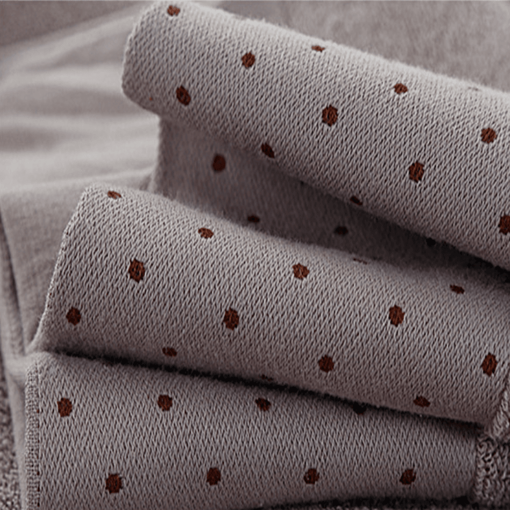 Rankšluosčių komplektas „Dots” – kokybiški, maksimaliai minkšti ir gerai sugeriantys vandenį. Kiekvienoje kilpoje yra 2-3 susuktos spiralės, todėl kilpos įtemptos ir pilnos. Pagaminta iš 100% natūralios medvilnės, pasižymi minkšta, aksomine tekstūra, kuri apgaubia jus po kiekvieno maudymosi. Stori medvilnės pluoštai greitai sugeria drėgmę, yra patvarūs ir ilgaamžiai.